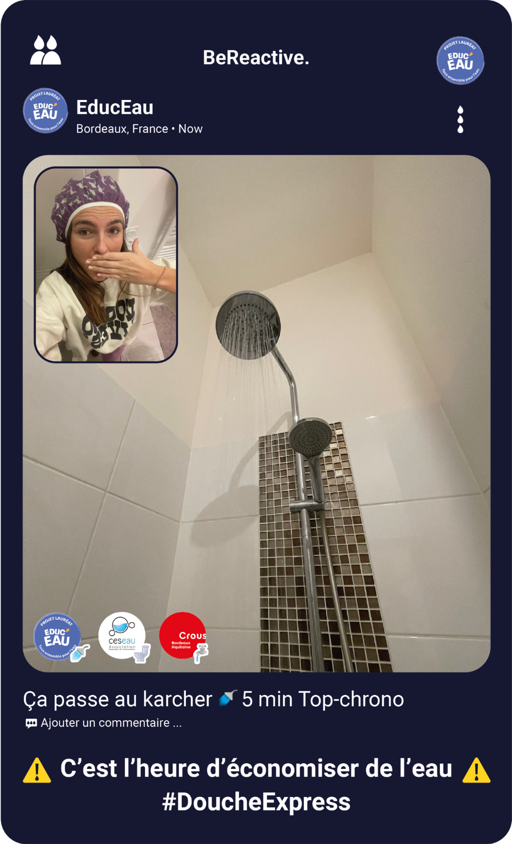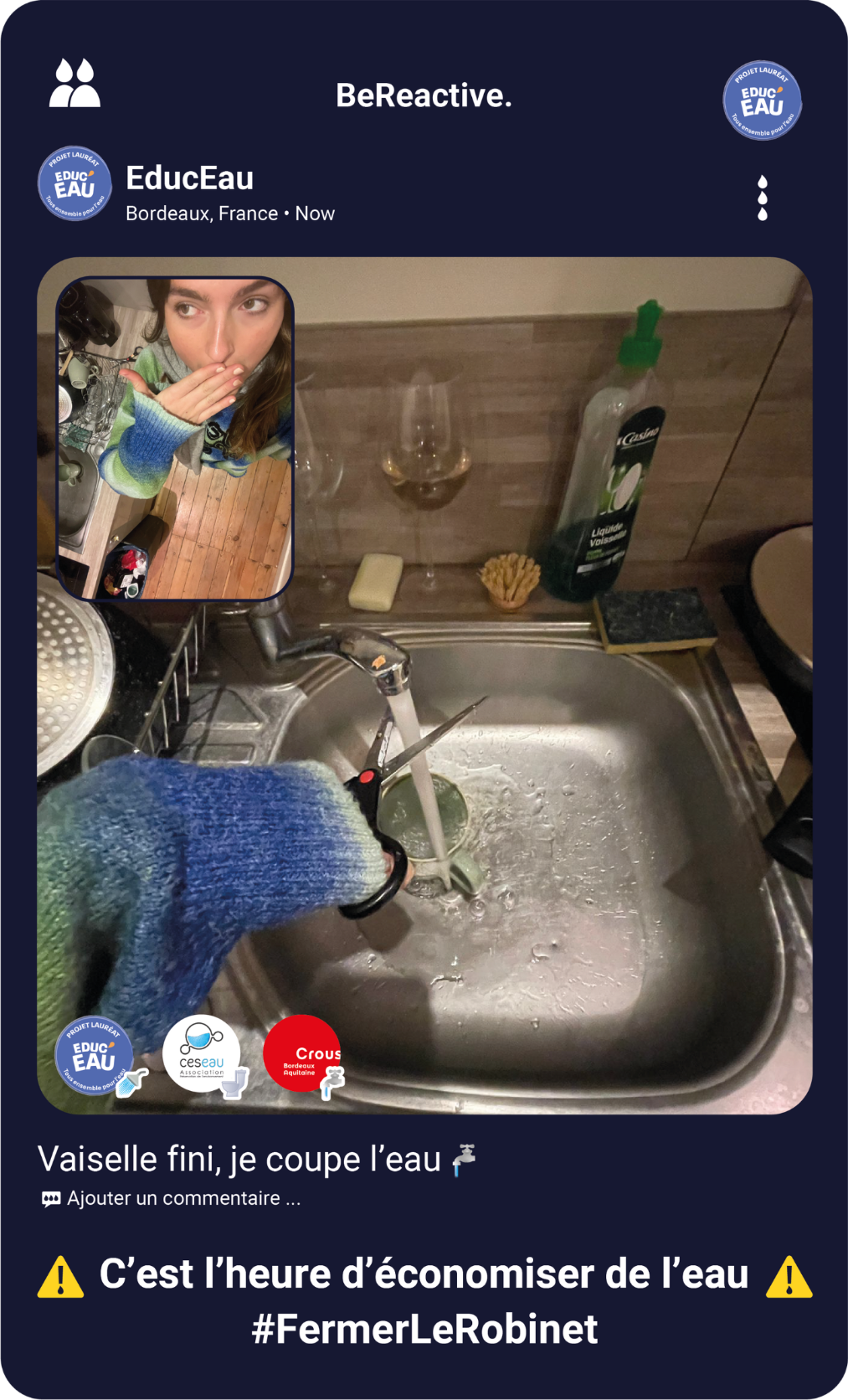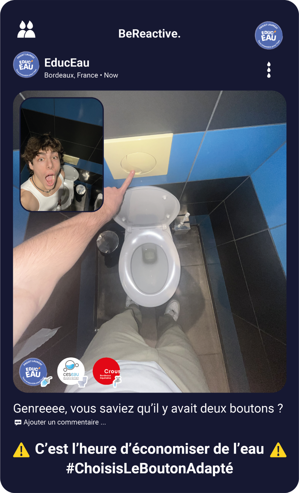 Pour ce projet, nous avons essayé de réfléchir à ce que nous, étant aussi la cible, aurions pu nous attirer. Nous avons tout de suite pensé à une application que beaucoup de jeunes utilisent au quotidien et qui en devient un code générationnel et reconnaissable : BeReal. Nous avons adaptées les codes graphiques et rédactionnelle de cette application dans nos visuels et créer BeReactive.
