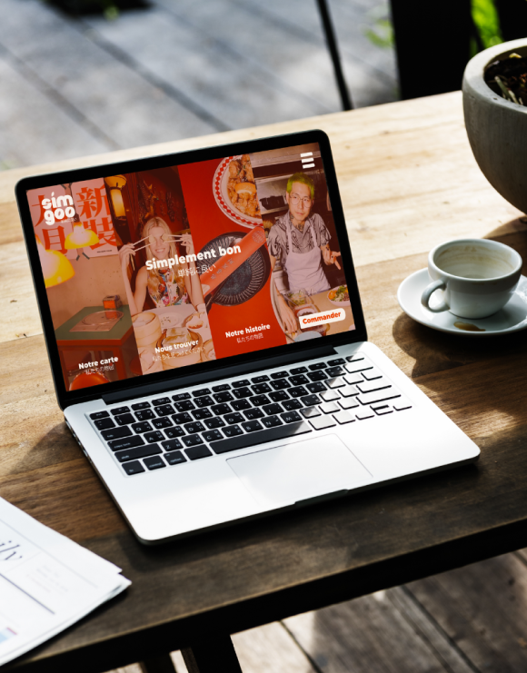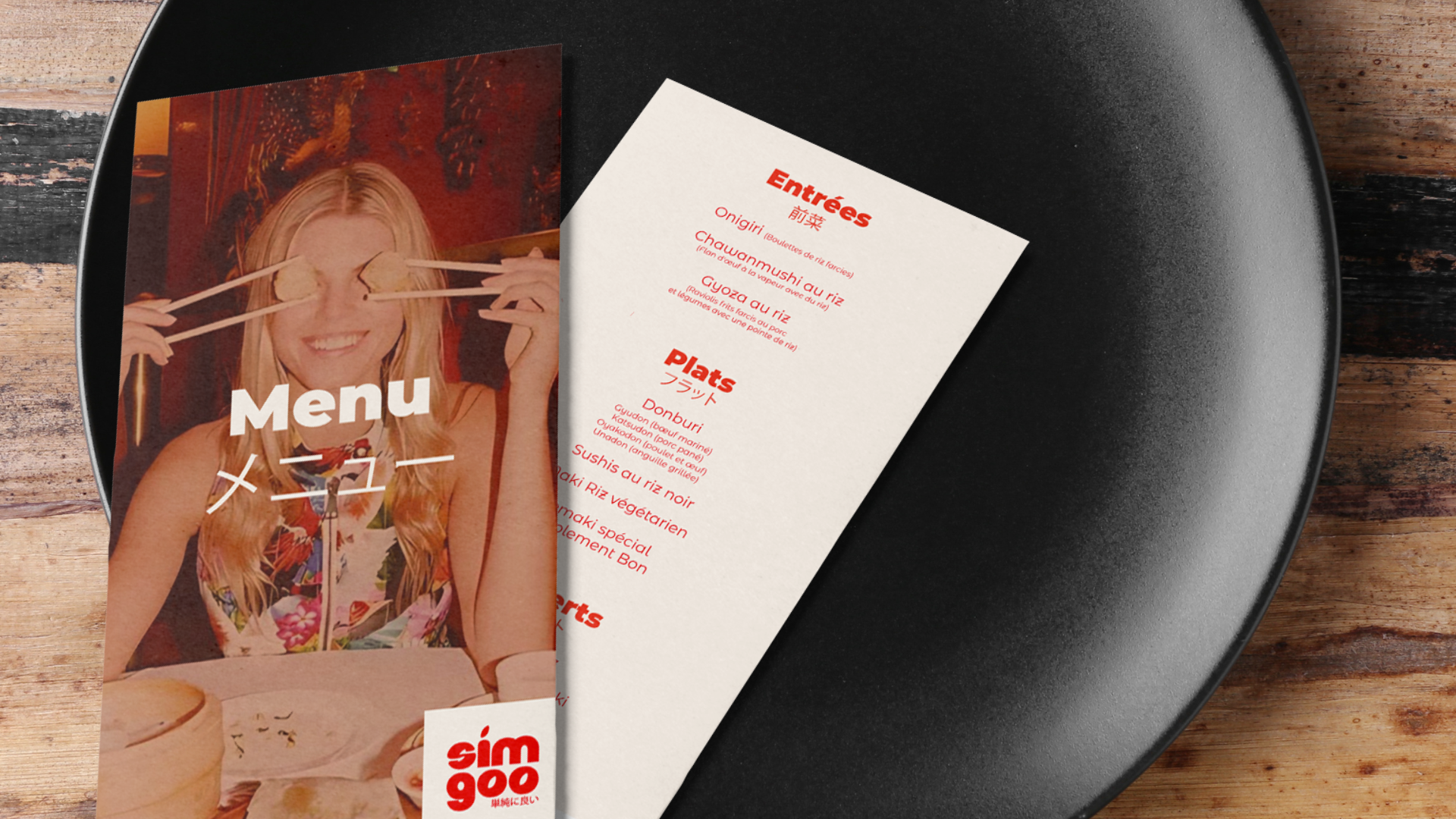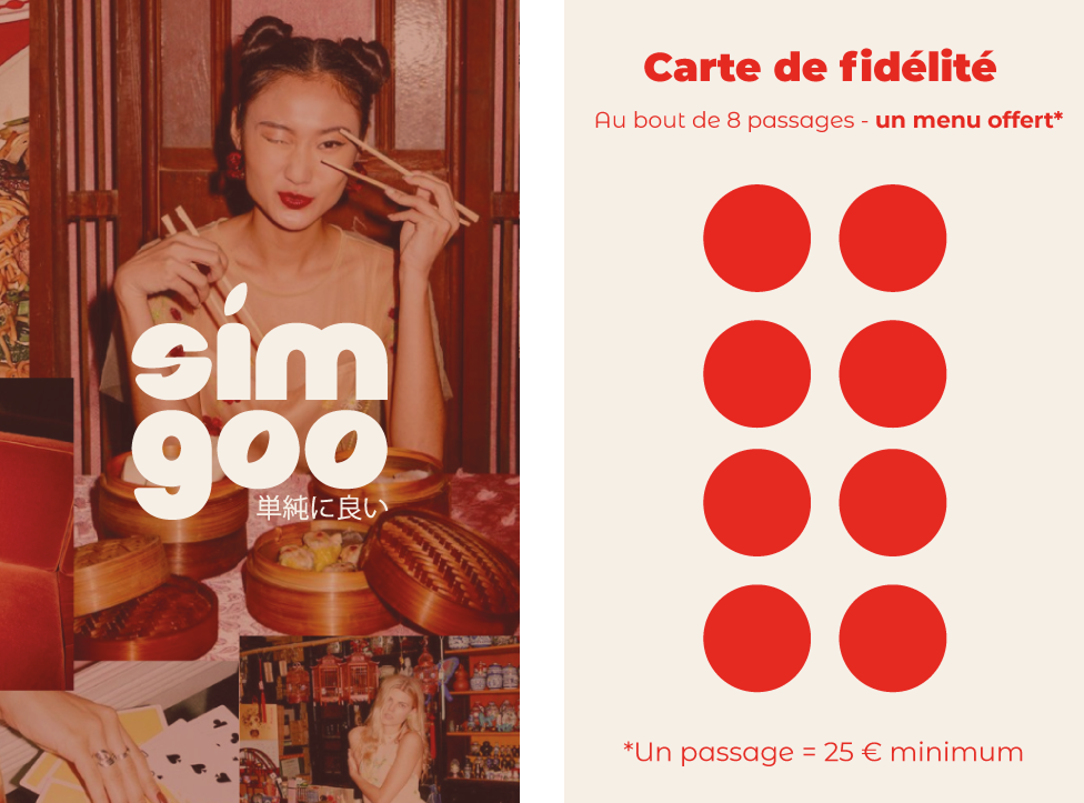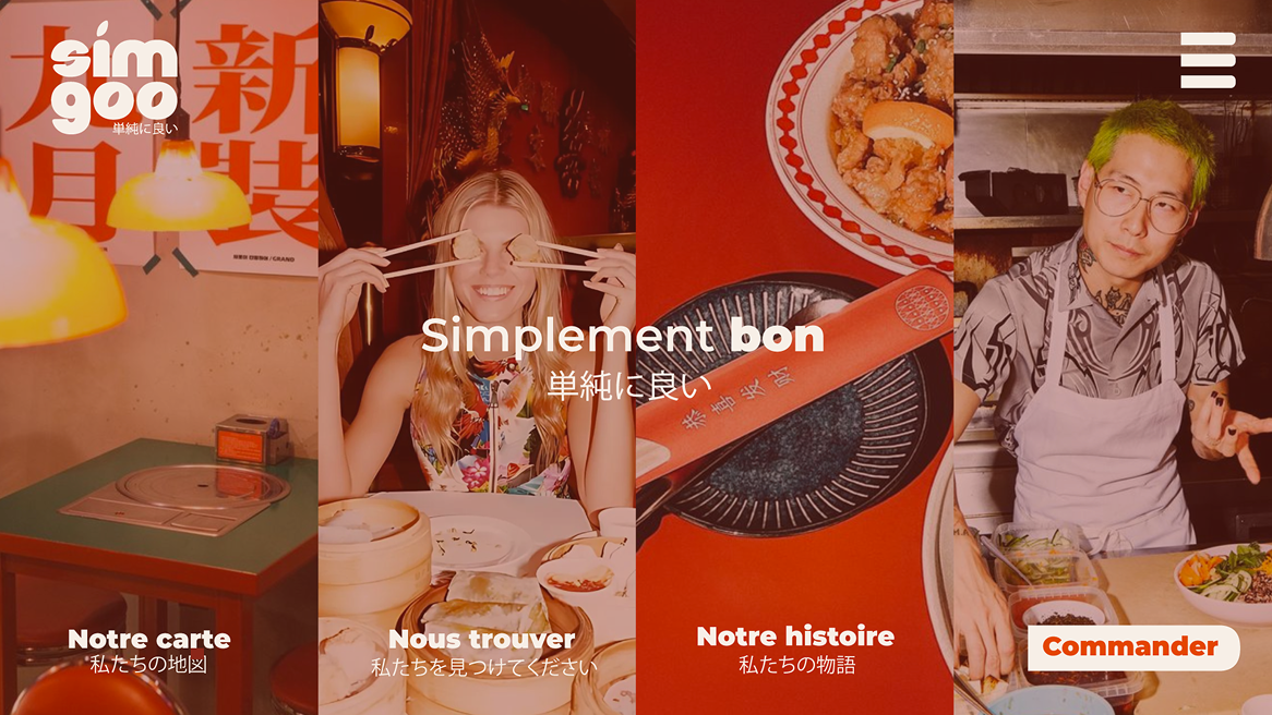 Simgoo est une nouvelle marque alimentaire japonaise inspirée par l’esthétique minimaliste d’Uniqlo. Son logo reprend la forme carrée rouge et la structure 3+3 lettres sur deux lignes, en clin d'œil à l’icône visuelle de la marque textile, tout en s’en détachant par un univers propre, centré sur la gastronomie.